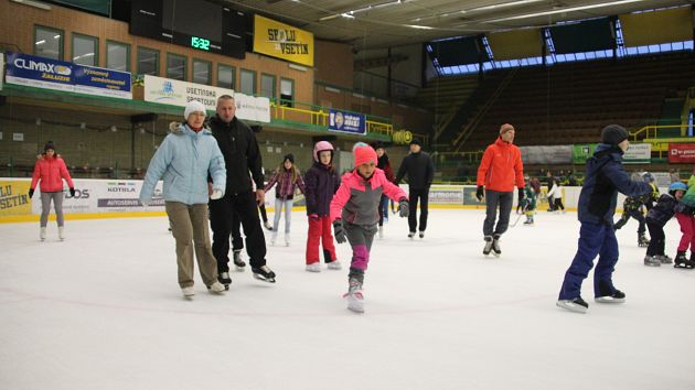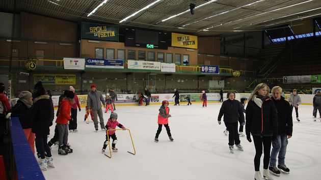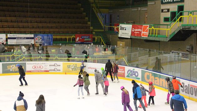 Příchozí si mohli užít dvouhodinové bruslení zdarma, během kterého se podávaly teplé